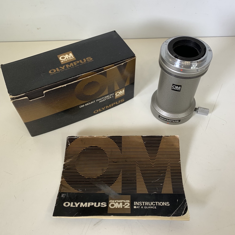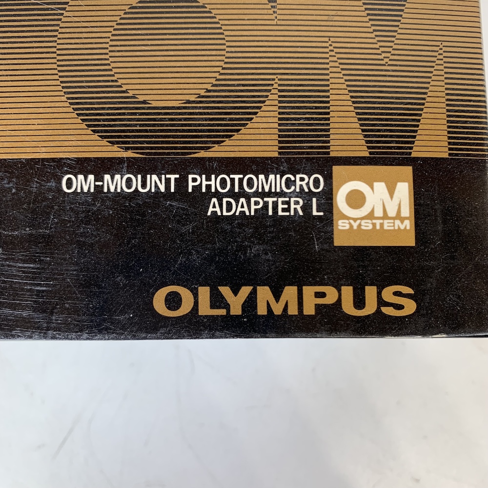 The OM-Mount Photomicro Adapter L was designed to attach an Olympus OM or SC 35 Type 12 camera body to an Olympus compound microscope or stereo microscope, either directly or via one or more additional adapters.