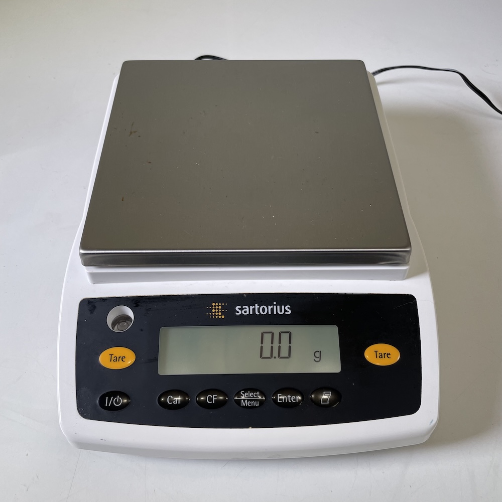 Sartorius top pan balance, 1 decimal place with a loading capacity of 2200g. External calibration, pan dimension 18 x18cm.