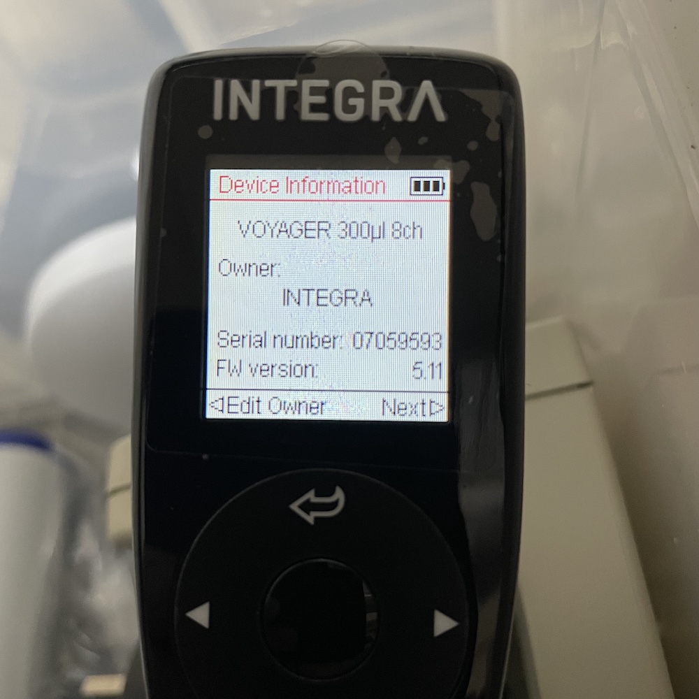 Integra Voyager Pipette 10-300µl 8 Channel 4723 + Charging Stand 4210